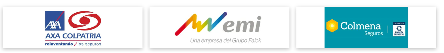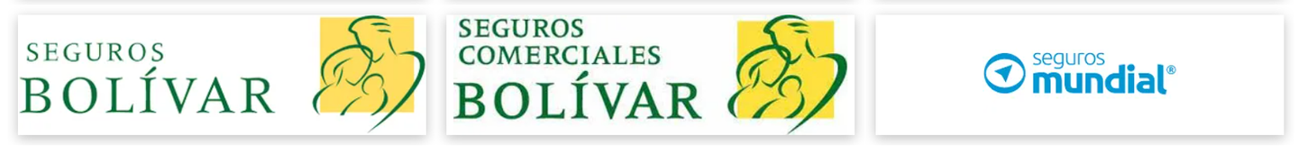 Seguros Bolívar S.A, Seguros Comerciales Bolívar S.A, Emermédica , Plan Dental Axa Colpatria, Seguros del Estado, Colmena Seguros, Grupo EMI Emergencia Médica Inmediata, Plan Dental Axa Colpatria.